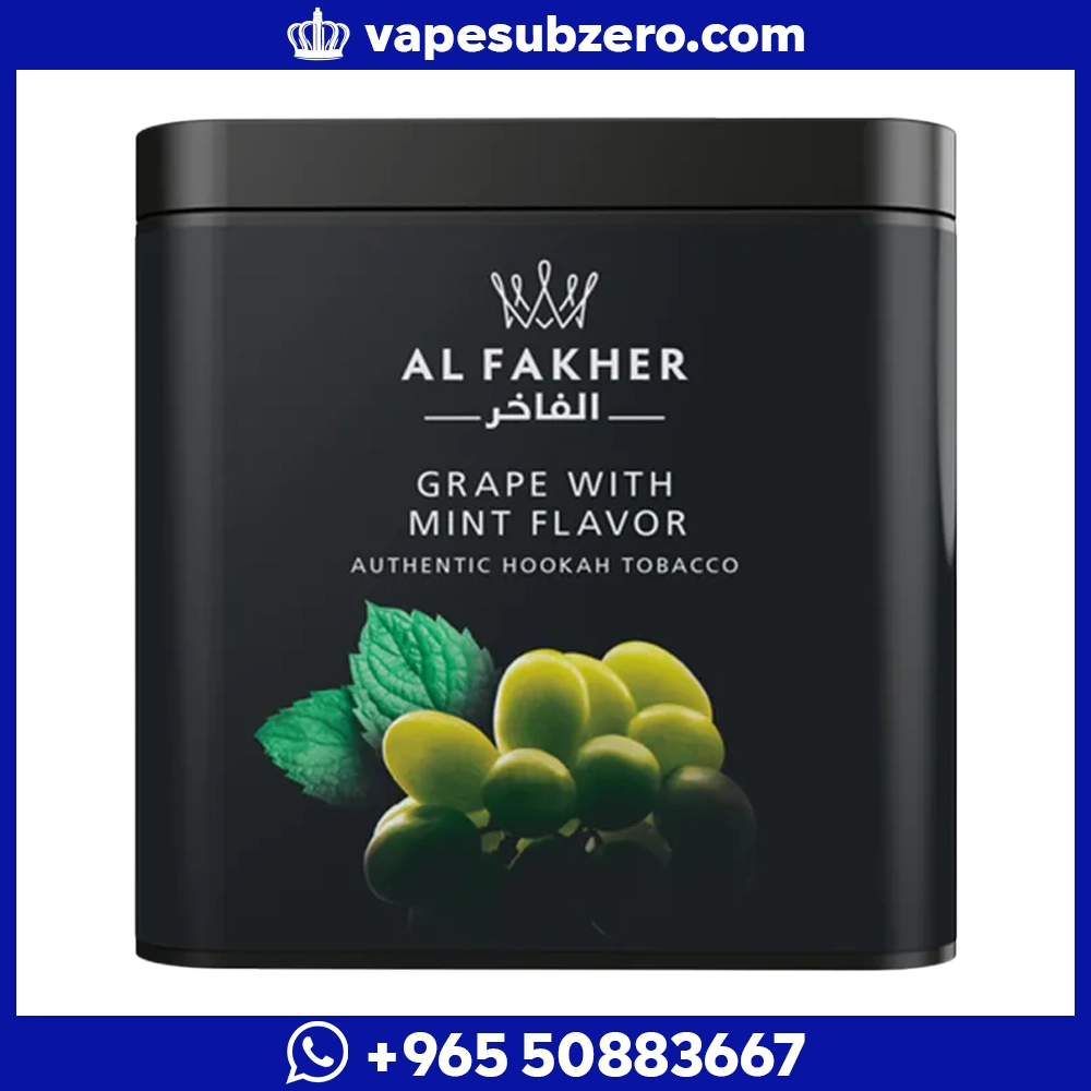 Al Fakher Grape with Mint is the “royal mix” that combines the sweetness of grapes with the refreshing coolness of mint. It offers a smooth taste and dense smoke. 250g pack.
