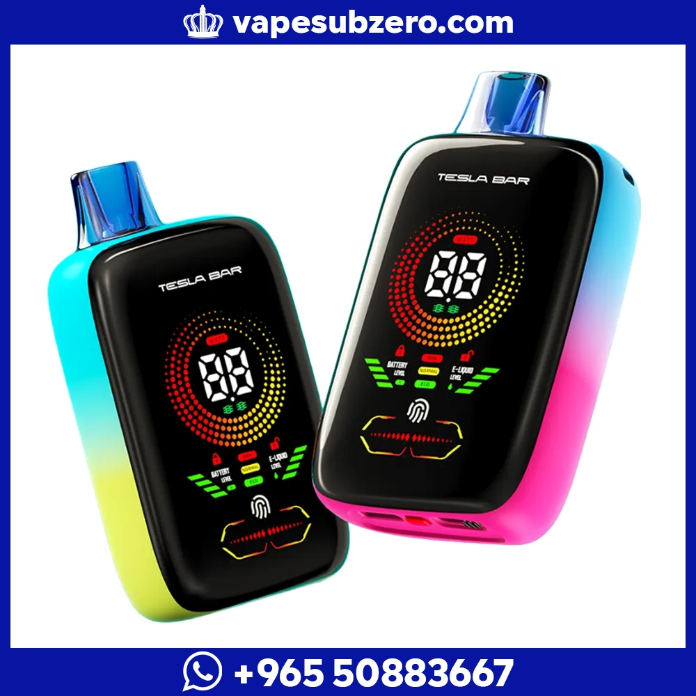 تسلا بار XT-25000 سحبة بجهاز ذكي وشاشة لمس كبيرة. يأتي ببطارية 800mAh وسعة نكهة 25ml مع 3 أوضاع للطاقة (ECO/NORMAL/MAX) وكويل مزدوج لطعم غني وبخار كثيف.