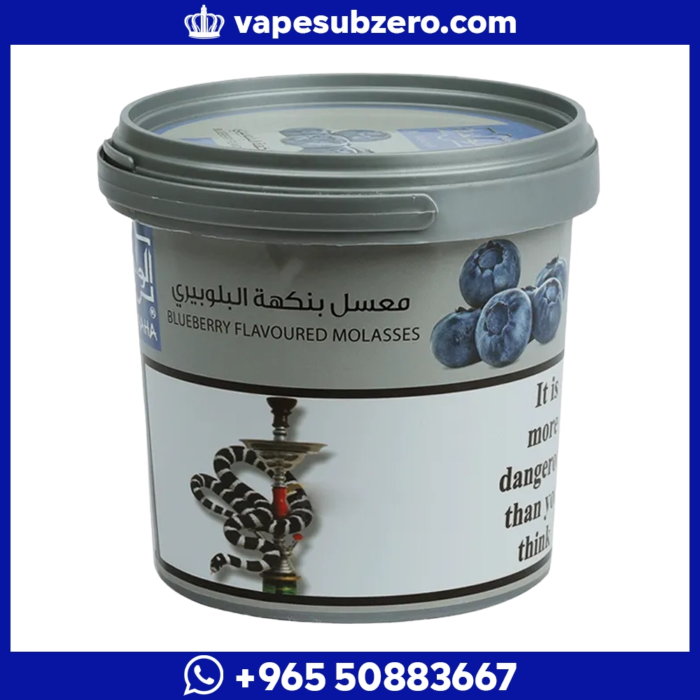 معسل الواحة بنكهة البلوبيري (التوت الأزرق). طعم حالي ومركز، سحبة ناعمة ودخان كثيف، عبوة 250 جم.