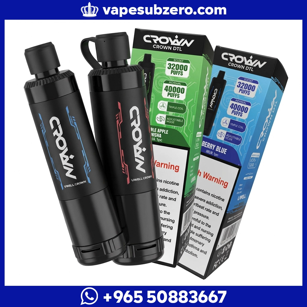 يو ويل كراون 40000 جهاز سحبات جاهزة موجه لعشّاق البخار الكثيف وسحبة الشيشة الواسعة، يقدّم أداء قوي مع عدد استخدامات مرتفع يصل إلى أربعين ألف سحبة. يعتمد على نمط DTL ليعطي سحبة مفتوحة ودخان كثيف يشبه الشيشة التقليدية، مع تركيز منخفض من النيكوتين لتجربة أنعم ومريحة.